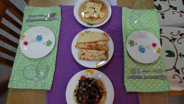 Agora vocês colocam os recheios e já podem servir. Obs: Quem não gosta de panqueca americana (aberta) pode fechar ela que também fica gostosa :)